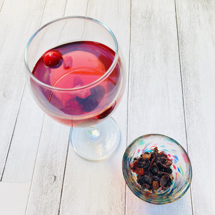 エルダーベリー・ブルーベリー・ブラックベリー・カラントの4種のベリーとローズヒップやチェリー、ハイビスカスの酸味を加えたバランスの取れた一品です。